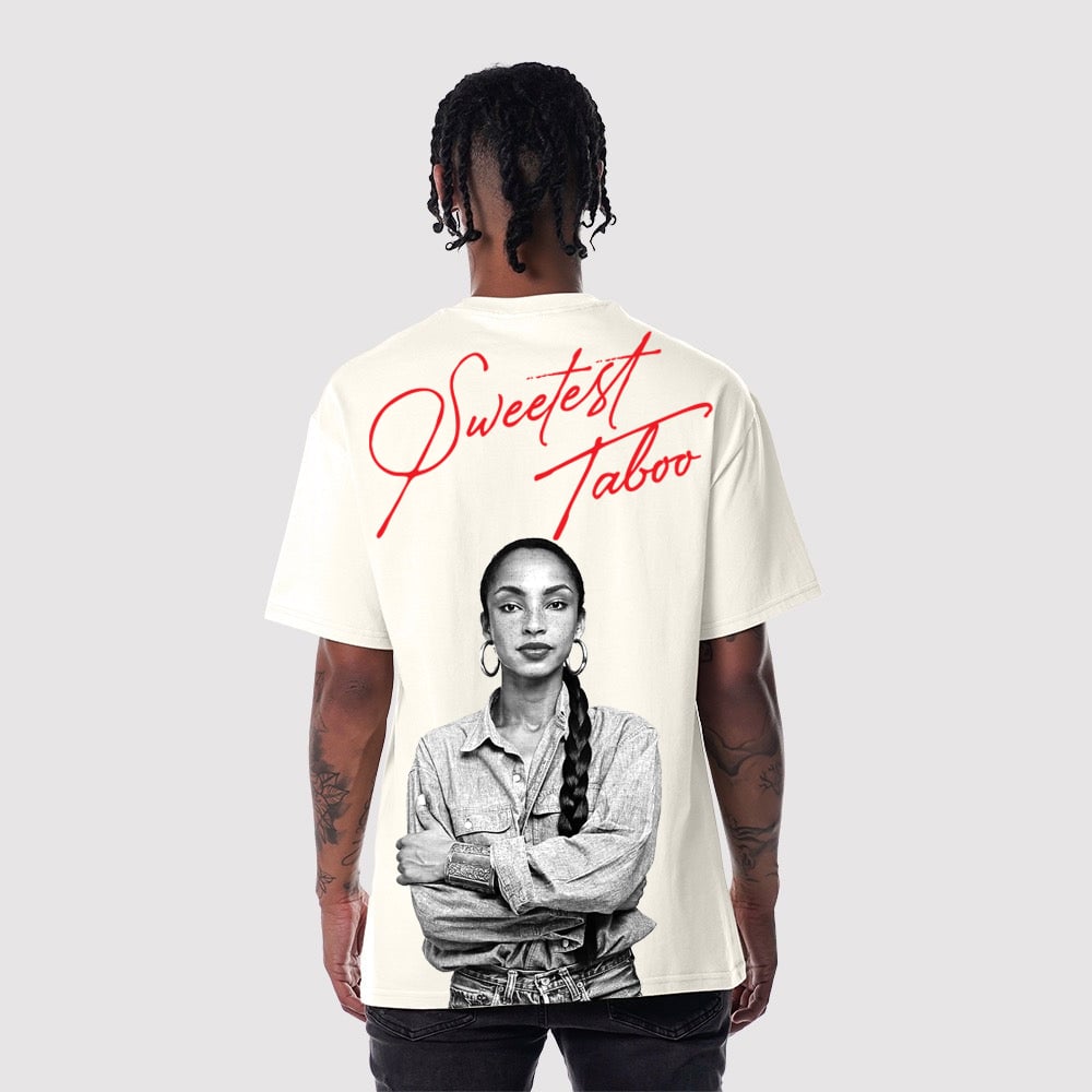 Back of t-shirt: Classic image of Sade